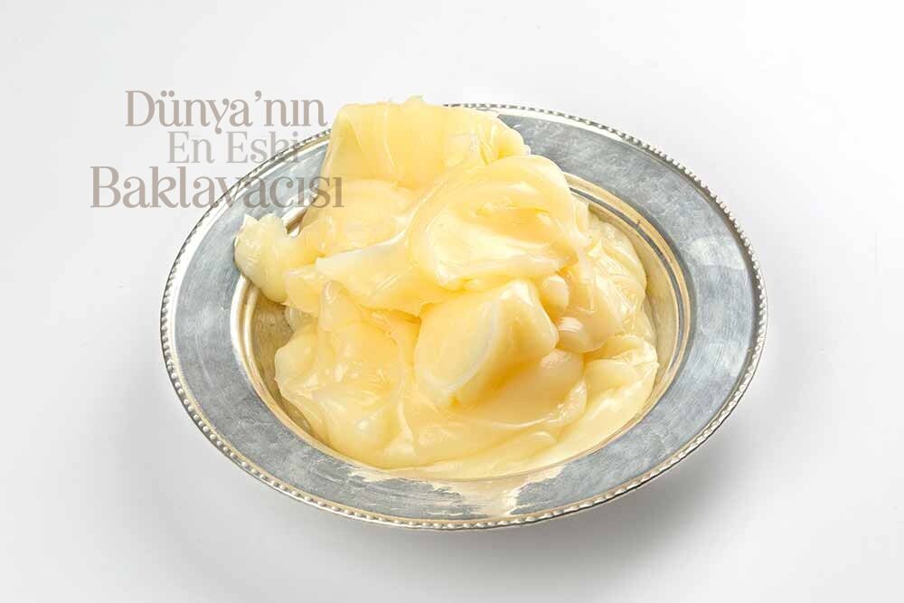 Baklavalarımızda kullandığımız Sade Yağımız.. Tereyağının özü olarak tanımlayabileceğimiz, içeriği %99,9 Yağ olan ve Koyun Sütünden elde edilen hakiki sade yağ..